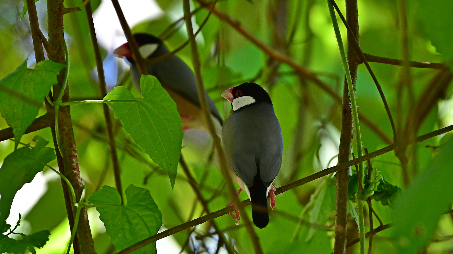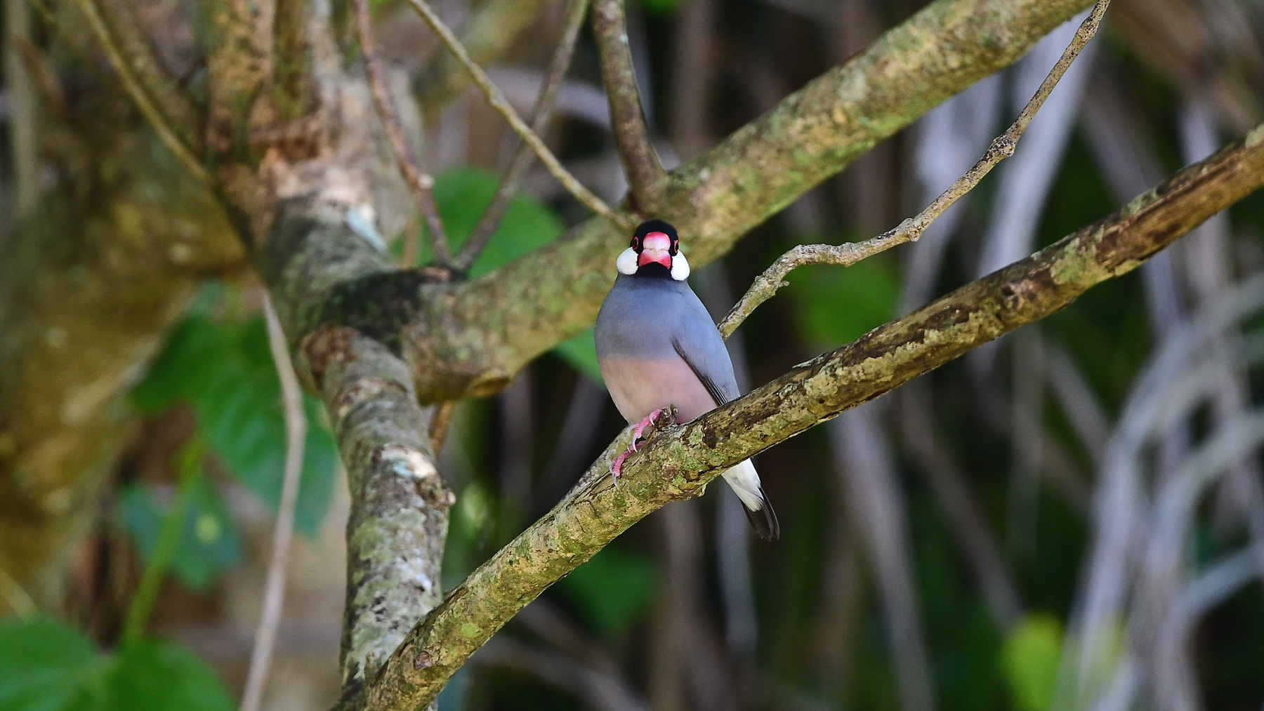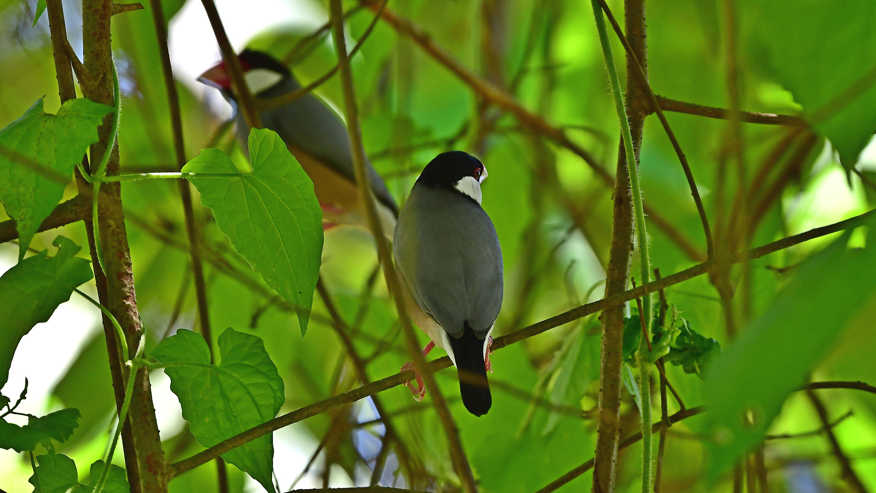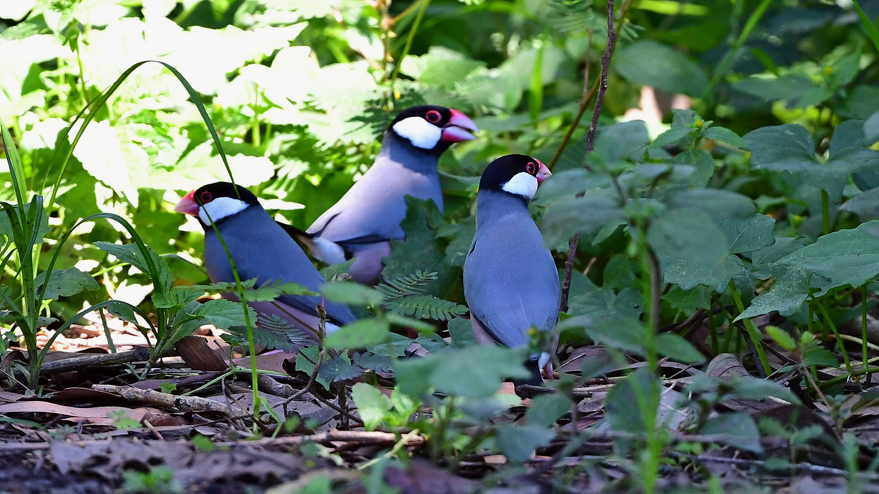 새를 파는 곳에 가 보았거나 길러 본 경험이 있다면 대번에 "어.. 문조네.." 하실 거다. 조롱 안의 인형 같고 만화 속 캐릭터 같은 문조가 실은 java sparrow, java finch, java rice-bird 등으로 불리는 야생의 새라는 것을 알고 나서는 기어이 인도네시아의 어느 들판에서 뛰노는 문조들을 만나보고 싶었다. 그런데 이곳은 보르네오 코타 키나발루 시내의 한 공원이다. 어떻게 된 일인가? 자바와 발리가 그들의 주 서식지였지만 정작 지금 그곳에서는 좀처럼 이 새를 만날 수가 없다. 자바섬을 여행할 때, 가는 곳마다 수소문하고 찾아보곤 하였지만 한 번도 모습을 드러내 보이지 않았다. 앞서 이들을 만난 분이 알려준 정보 덕분에 코타 키나발루의 한 공원에서는 쉽게 만날 수 있었다. 요즘은 다른 몇몇 장소에서도 볼 수 있다고 한다. 조롱을 탈출한 새들은 social bird들 답게 그들의 끈끈한 사회성에 이끌려 하나 둘 모였을 것인데 자연번식을 통해 이제는 조금씩 무리를 키워 가고 있는 것 같다. 인간에게 싹쓸이 채집을 당하며 멸종 직전까지 갔던 새들이 곁눈질하며 다시 인간의 주변을 서성이고 있는 것이다. 불행 중 다행이라고 해야 할까? 사피엔스는 모든 육지 동물 종들을 식량 한다며 방해된다며 위험하다며 멸종의 벼랑 끝으로 몰아갔고 실제로 97퍼센트를 소멸의 구렁텅이 속으로 밀어 넣었다. 우리는 지금 남은 3퍼센트의 종과 살고 있다. 여전히 미움의 곁눈질을 하며.