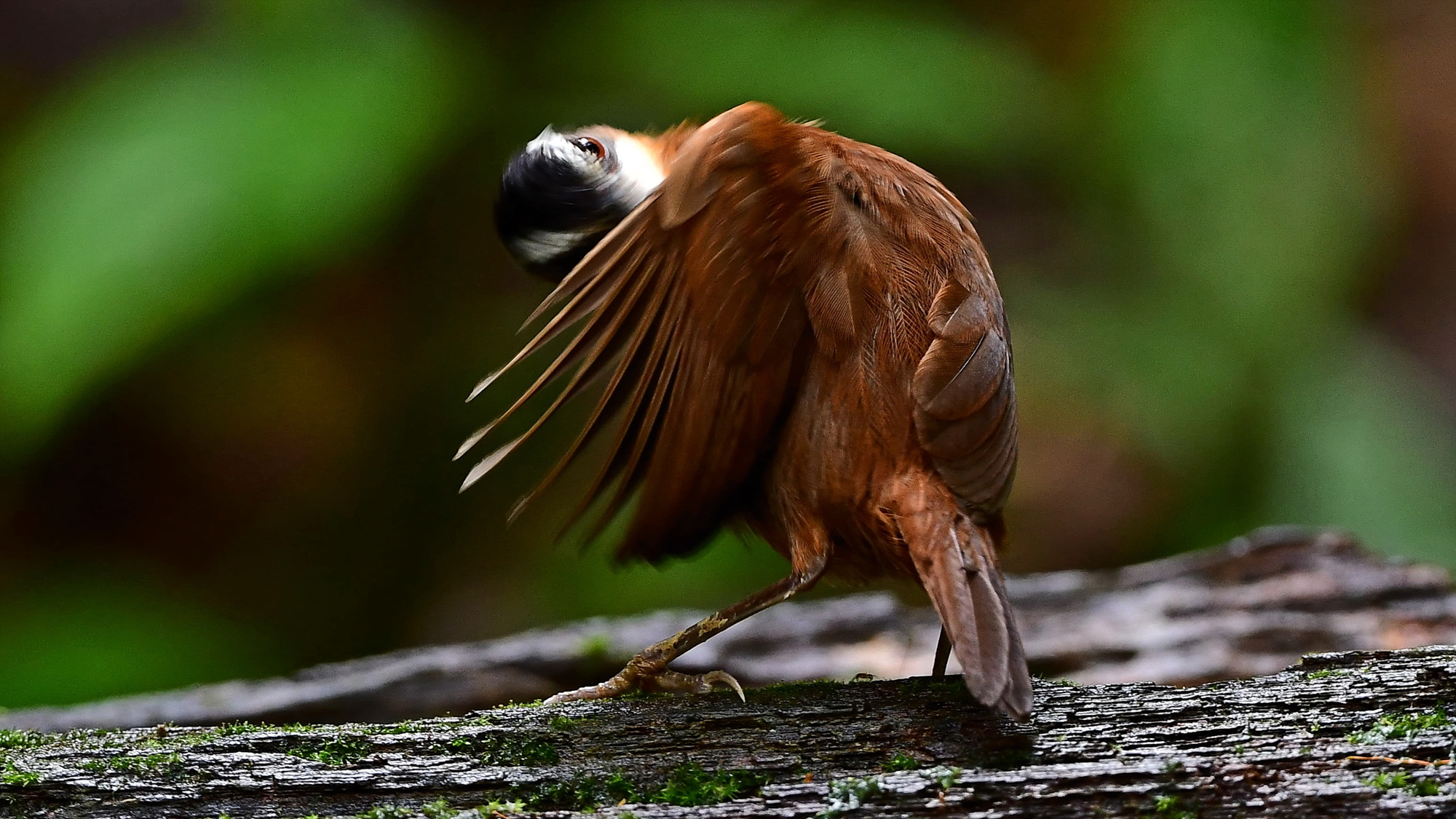 보르네오의 어느 숲, 이킹이 새의 노래를 들려주자 언덕 너머에서 기다렸다는 듯이 응답하던 새는 어느새 동굴 속 같이 어둡고 축축한 정글의 쓰러진 나무들을 지나 커다란 잎사귀 뒤로 다가왔다. 그 틈새를 통해 밝고 커다란 눈으로 그의 미소를 읽었다. Iking의 표정은 밝고 온화하다. 새는 노래하기와 먹기를 반복하다가 온몸이 노출되는 그루터기 위에서 자신을 바라보는 눈이 몇 개이며 카메라가 몇 대인지 빤히 알고 있지만 깃을 다듬기 시작한다. 완전한 무장해제를 알려오는 것이다. 머리를 깃에 파묻거나 날개로 눈을 가리기도 하면서 무아지경에 빠진다. 어두운 숲 속의 별 같고 꽃 같은 요정의 춤이다.