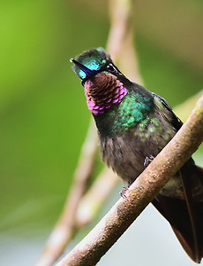 Rufous-tailed Hummingbird, 10cm 역시 Moneverde에서 먼저 만났던 새. CR전역에서 볼 수 있다고 하니 적응력이 대단히 좋은 새인 듯하다. 2019. 9. 27. White-crested Coquette, 8cm, Endemic to CR & West Panama 언제고 남미 숲속의 숨겨진 보석들과 비밀의 정원을 어른거리는 요정들을 찾아내고 만나기 위한 긴 여행을 떠나야 한다. 2019. 9. 24. Brown Violet-ear, 10cm 400m에서 1600m까지 분포하는 새를 몬테베르데에서 먼저 만났다. 우연이겠지만 란초와 몬테베르데가 brown violet-ear의 분포의 시작과 끝에 걸쳐 있었던 것. 보라와 초록으로 차려 입은 벌새들이 대부분인데 이들의 갈색 수트는 수수한 듯하나 오히려 특별한 멋이 있다. 2019. 9. 23. White-necked Jacobin. 13cm 급이대를 가장 왕성하게 방문하는 새였다. 첫 날, 메니저가 롯지를 한 바퀴 돌며 안내를 할 때 White-necked Jacobin의 지정석에 관한 이야기를 꽤 상세하게 해주어서 인상적이었다. female 2019. 9. 16. Green Thorntail,10cm "작은 크기와 흰색의 럼프 밴드 때문에 Coquette로 혼동할 수 있지만, 수컷의 긴 꼬리, 머리에 크레스트가 없는 점 등에서 Coquette가 아니라는 것을 알 수 있다" 는 도감의 설명은 Green Thontail을 Coquette로 부르지 못하는 것에 대한 아쉬움이 감지된다. Thorntail 같은 종은 생각치도 못했는데 Rancho Naturalista의 서프라이즈 선물이었다. 2019. 9. 15. Rufous-tailed Hummingbird, 10cm CR 전역에 분포하며 거의 인가 주변에서 서식하고 common 하다고 한다. 대단히 공격적이어서 곧잘 추격전을 벌이곤 한단다. 설탕물 먹이대 주변에는 쫓고 쫓기는 새들이 종종 보였는데 바로 이들이었던 모양이다. 2017. 11. 13. Long-billed Starthroat, 10cm 목이 어떻게 아름다워서 starthroat라고 이름지었을까? 도감에서 이 새를 찾아내지 못해 몇 번을 왕복하다 간신히 도착했다. 내가 찍은 사진에서는 목이 거의 검기 때문이었다. 빛의 각도에 따라 벌새들의 깃의 색은 천변만화 한다. 그의 별 처럼 새빨간 throat 를 보고 싶다. 트레일에서 만나 다른 각도에서는 담지 못했다. 난초를 버릴 수 없어서.. 2017. 11. 12. Violet Sabrewing, 15cm 날개 끝이 펜싱 종목 Sabre 의 검처럼 생겼다고 붙은 이름인 듯하다. 큰 데다 강렬한 색깔 때문에 정원에서 가장 눈에 잘 들어왔다. 가깝게 사람을 스치듯 날아갈 때면 날개의 붕붕거리는 소리가 의외서 커서 꽤 위협적으로 들렸다. 덩치값하느라 다른 hummingbird들 보다 훨씬 예민했고 거리를 주지 않았다. 2017. 11. 12. Purple-throated Mountain-gem, 10cm [Endemic to CR and western Panama] Mountain-gem, 근사한 이름이다. male female 2017. 11. 9. Brown Violet-ear, 10cm 보이는 것이 전부일까 ? 그리고 더 무엇을 숨기고 있는 것은 아닐까? 블러가 생겼지만 이름에 제대로 답한다. 2017. 11. 8. Green Violet-ear, 10cm hummingbird들은 정원이 아닌 숲이나 트레일에서 만나면 거리를 잘 주지 않는데, 꽤 가깝게 만났다. 고도가 높은 곳에서는 very common의 지위를 갖는다. Monteverde는 1400m에서 1800m 정도 이므로 이들에게 좋은 환경인 모양이다. 2017. 11. 7. 이전 1 다음